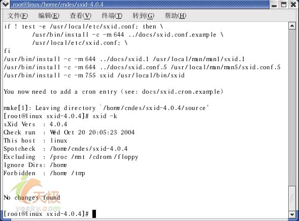 install”命令即可安装。它可以扫描系统中suid和sgid文件和目录,因为这些目录很可能是后门程序,并可以设置通过电子邮件来报告结果。>缺省安装的配置文件为/etc/sxid.conf,这个文件的注释很容易看懂,它定义了sxid